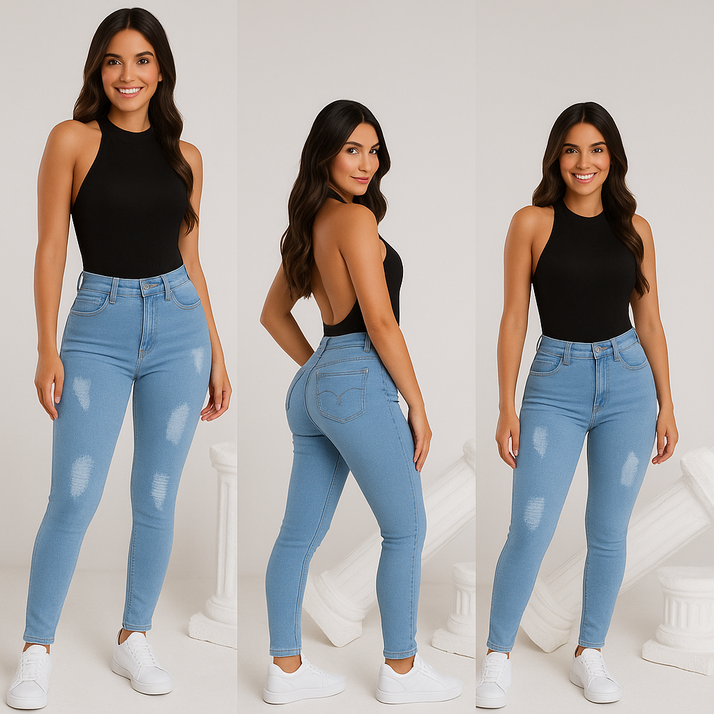 Fresco, versátil y cómodo: el jean ideal para el día a día. Su tono azul claro y sutil efecto desgastado aportan un estilo moderno y relajado. El tiro alto y su corte ajustado desde la cadera al tobillo favorecen la figura, convirtiéndolo en una prenda esencial para cualquier temporada.