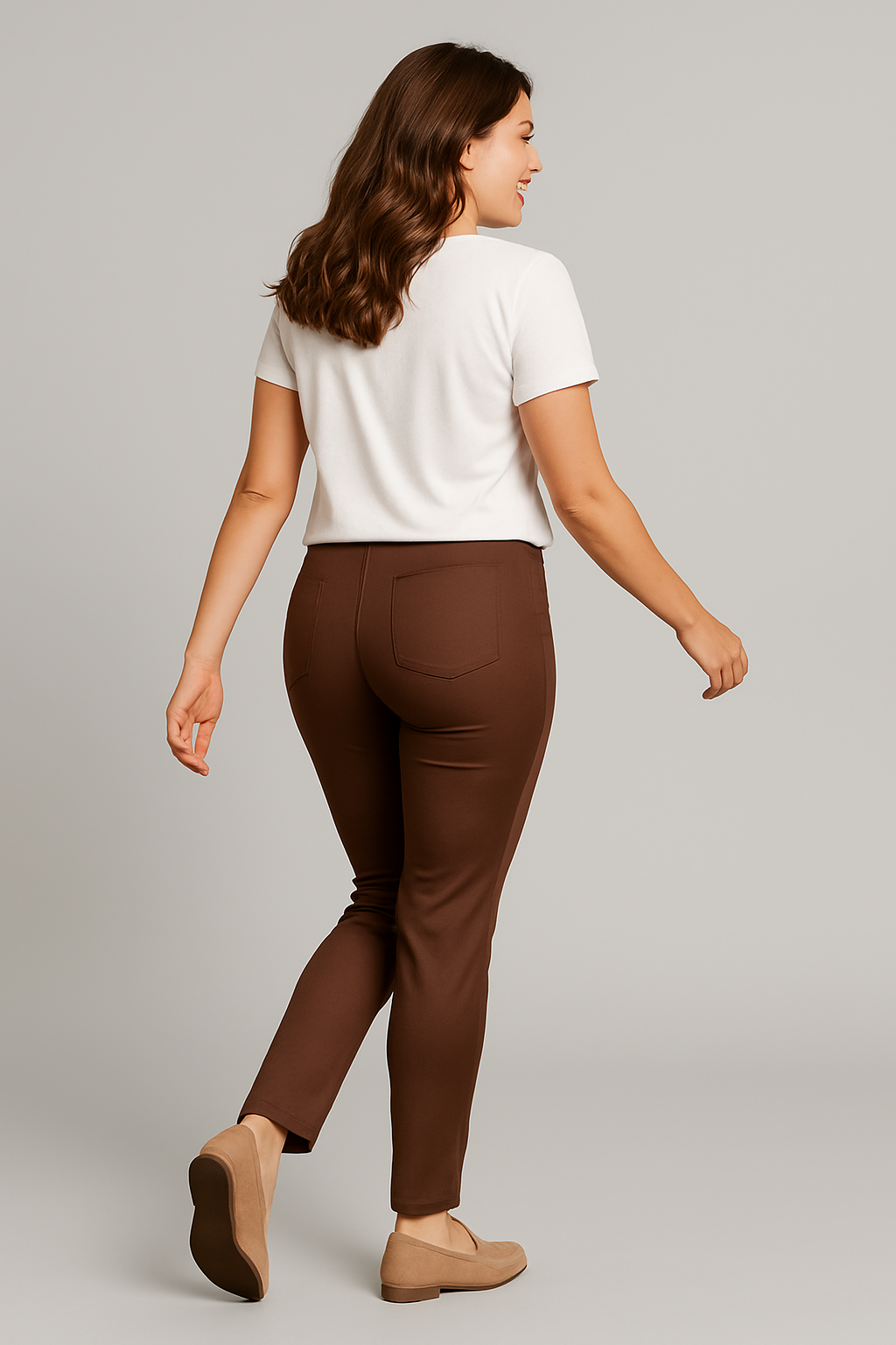 Un diseño moderno y cómodo que estiliza la silueta. De pretina alta ancha y corte ajustado en la pierna, realza la figura mientras aporta versatilidad y elegancia. Las pequeñas aberturas en los bajos brindan un detalle sutil y práctico. Ideal para outfits casuales o combinaciones más formales con blusas y tacones.